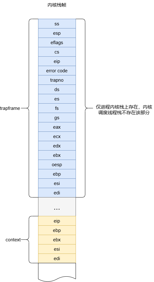 最终,一个待调度的进程的内核栈帧就形成了: