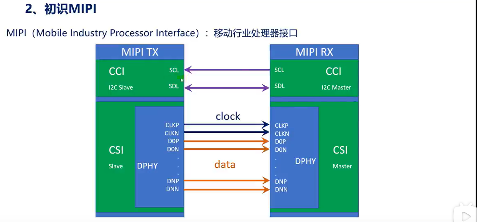 上面的CCI就是相机控制接口,使用I2C进行通信。下面CSI就是相机串行接口,主要是传输数据用的。