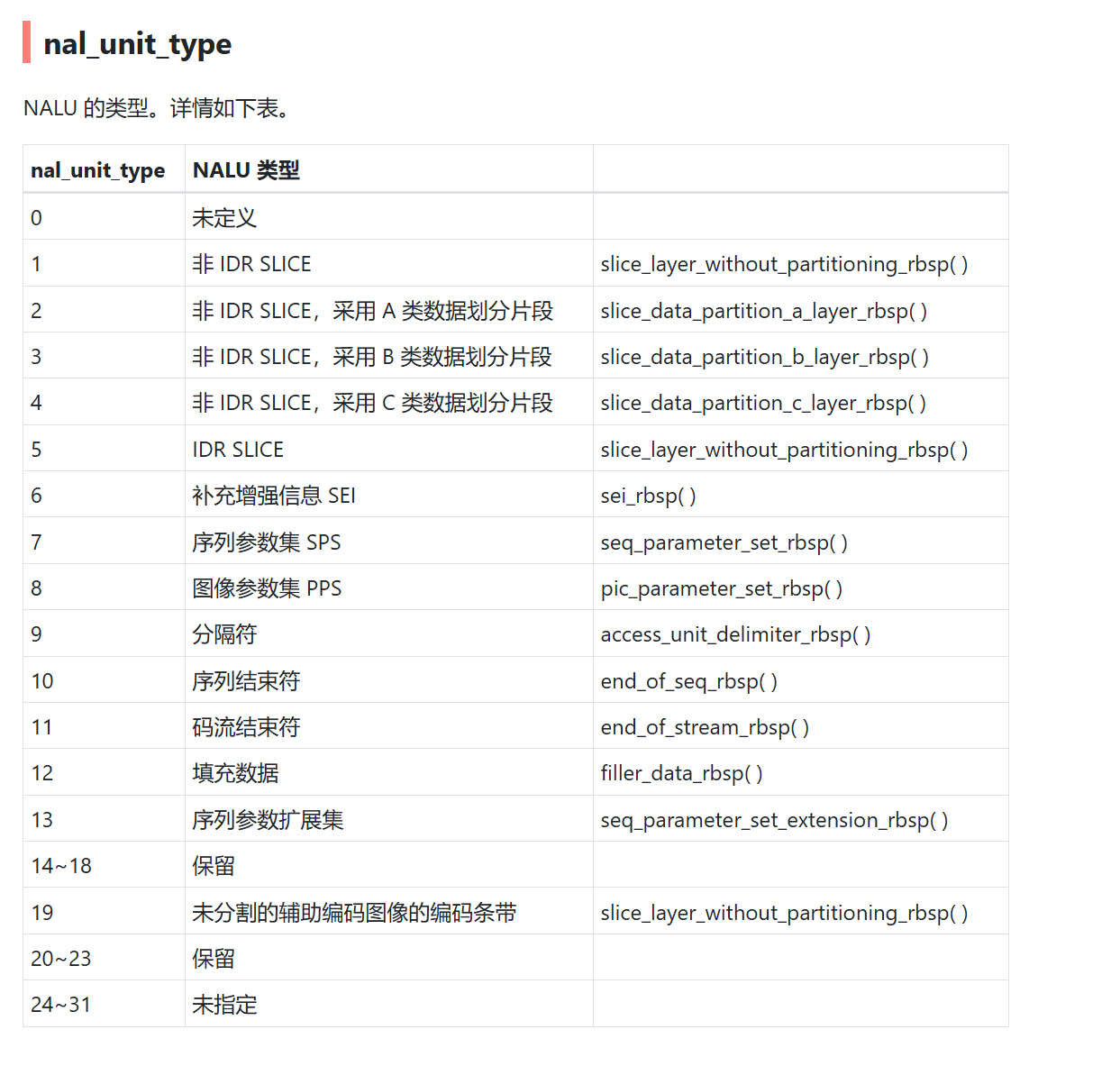 典型的nalu类型有: