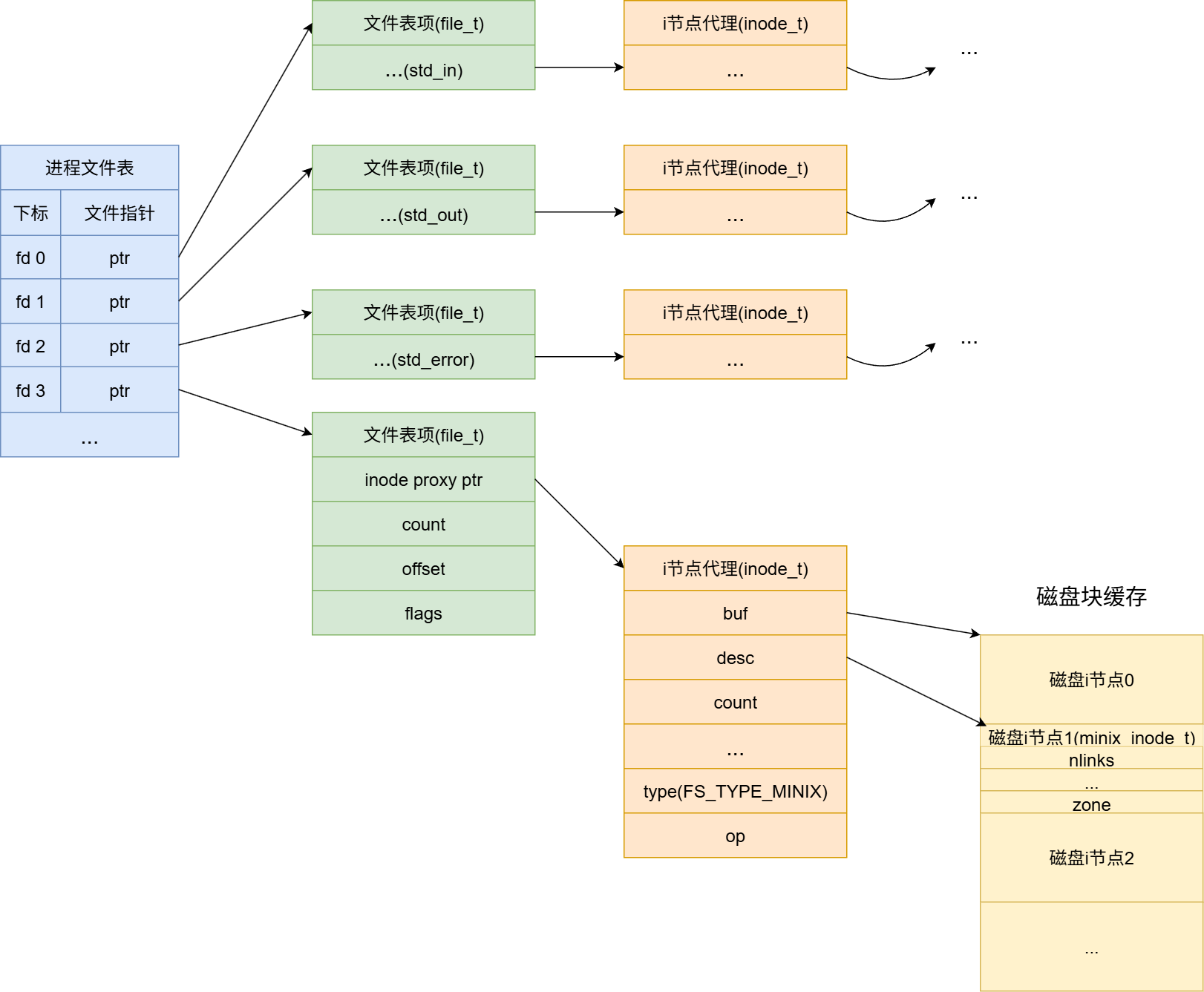 - 调用minix的open回调,打开/创建文件。获取文件的i节点代理。