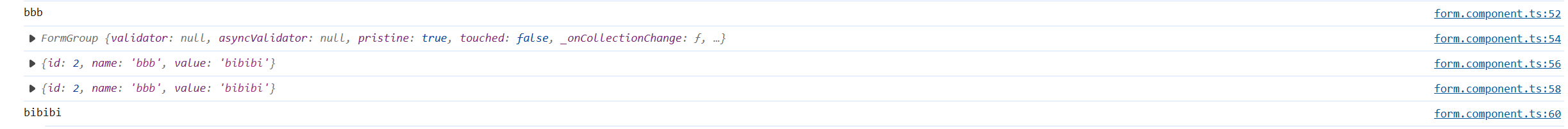 1 2 3 4 5 6 7 8 9 10 11 12 13 14 15 16 17 18 19 20 21 22 23 24 25 26 27 28 29 30 31 32 33 34 35 36 37 38 39 40 41 42 43 44 45 46 47 48 49 50 51 52 53 54 55 56 57 58 59 60 61 62 export class FormComponent implements OnInit { constructor (private fb :FormBuilder ) { } infoForm = this .fb .group ({ infos : this .fb .array ([]), }); get infos (): FormArray { return this .infoForm .get ('infos' ) as FormArray ; } ngOnInit ( ) { const fm = this .fb .group ({ id : 1 , name : "aaa" , value : "aiaiai" , }); this .infos .push (fm); const fm1 = this .fb .group ({ id :2 , name :"bbb" , value :"bibibi" , }); this .infos .push (fm1); const fm2 = this .fb .group ({ id :3 , name :"ccc" , value :"cicici" , }); this .infos .push (fm2); var playerInterval_dvp = setInterval (() => { console .log ("aaa" ) }); } onSubmit ( ){ console .log (this .infos .at (1 ).get ('name' ).value ); console .log ((this .infos .at (1 ))) console .log ((this .infos .at (1 ).value )) console .log ((this .infos .at (1 ).value as MyInfoInterface )) console .log ((this .infos .at (1 ).value as MyInfoInterface ).value ) } } export interface MyInfoInterface { id : number ; name : string ; value : string ; }