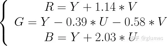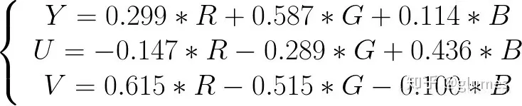 yuv和rgb可以相互转化,一般来说,传输会使用yuv(节省带宽),显示的时候会使用rgb。公式如下: