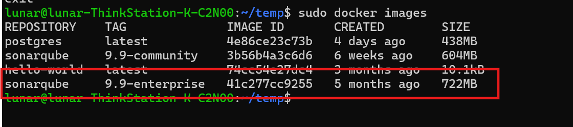 1 | docker pull sonarqube:9.9-enterprise |