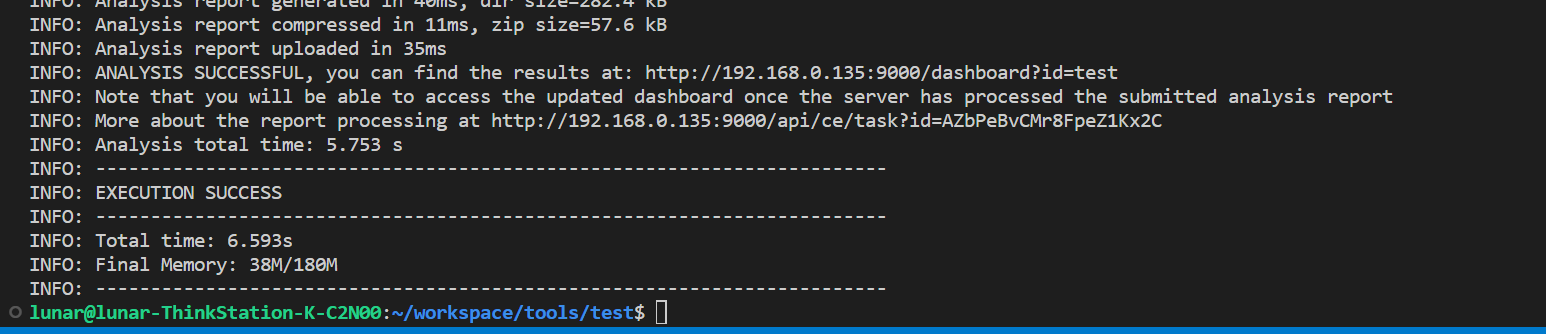 命令才是真正执行代码审查的主体。然后回到项目根目录,使用扫描器进行代码审查,分析结果会传到sonarqube所属项目当中: