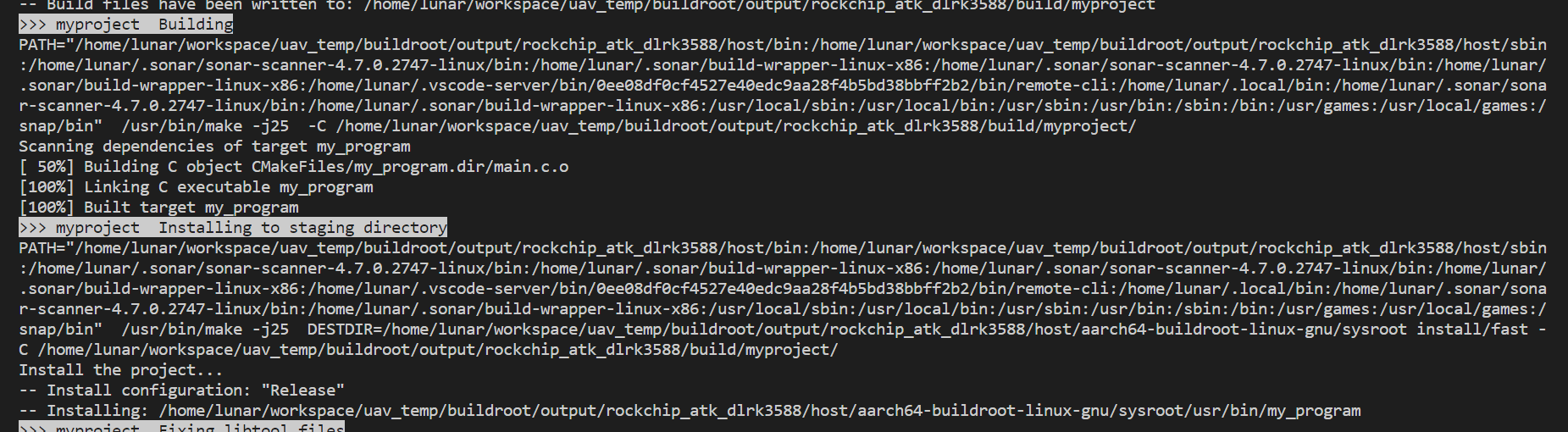 可以看到,默认的编译效果会使用cmake文件当中的安装代码。