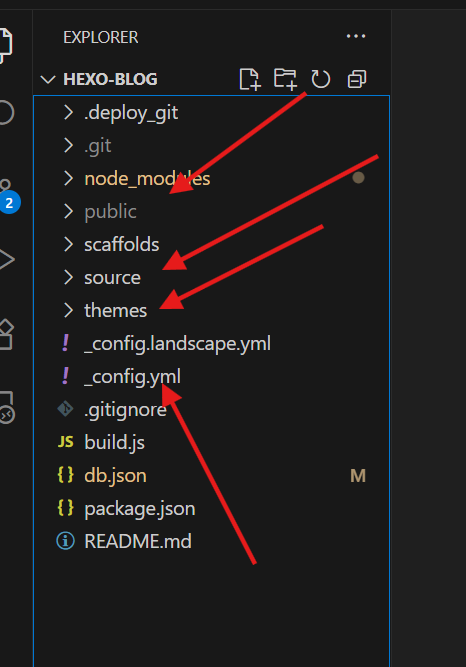 命令生成的html静态网页。 - source: 我们.md博客存放的目录。主要放在_posts文件夹下。