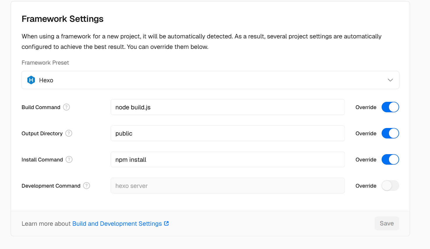 目前我的Vercel项目 Build Command、Output Directory、 Install Command配置如下: